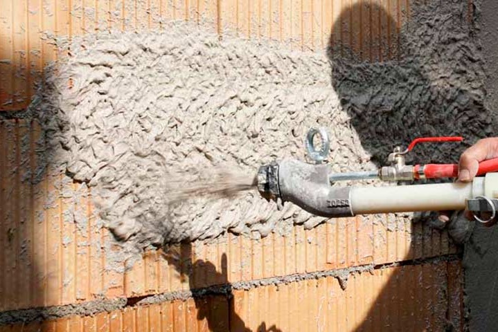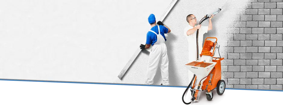 Provádíme strojní omítání stěn, stropů a fasád u novostaveb či rekonstrukcí budov.