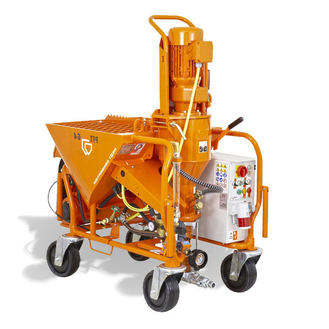 K práci využíváme moderní omítací stroj, se kterým provádíme rovnoměrné nanášení omítkové směsi. Poskytujeme vám kvalitní omítkové směsi od značkových výrobců.